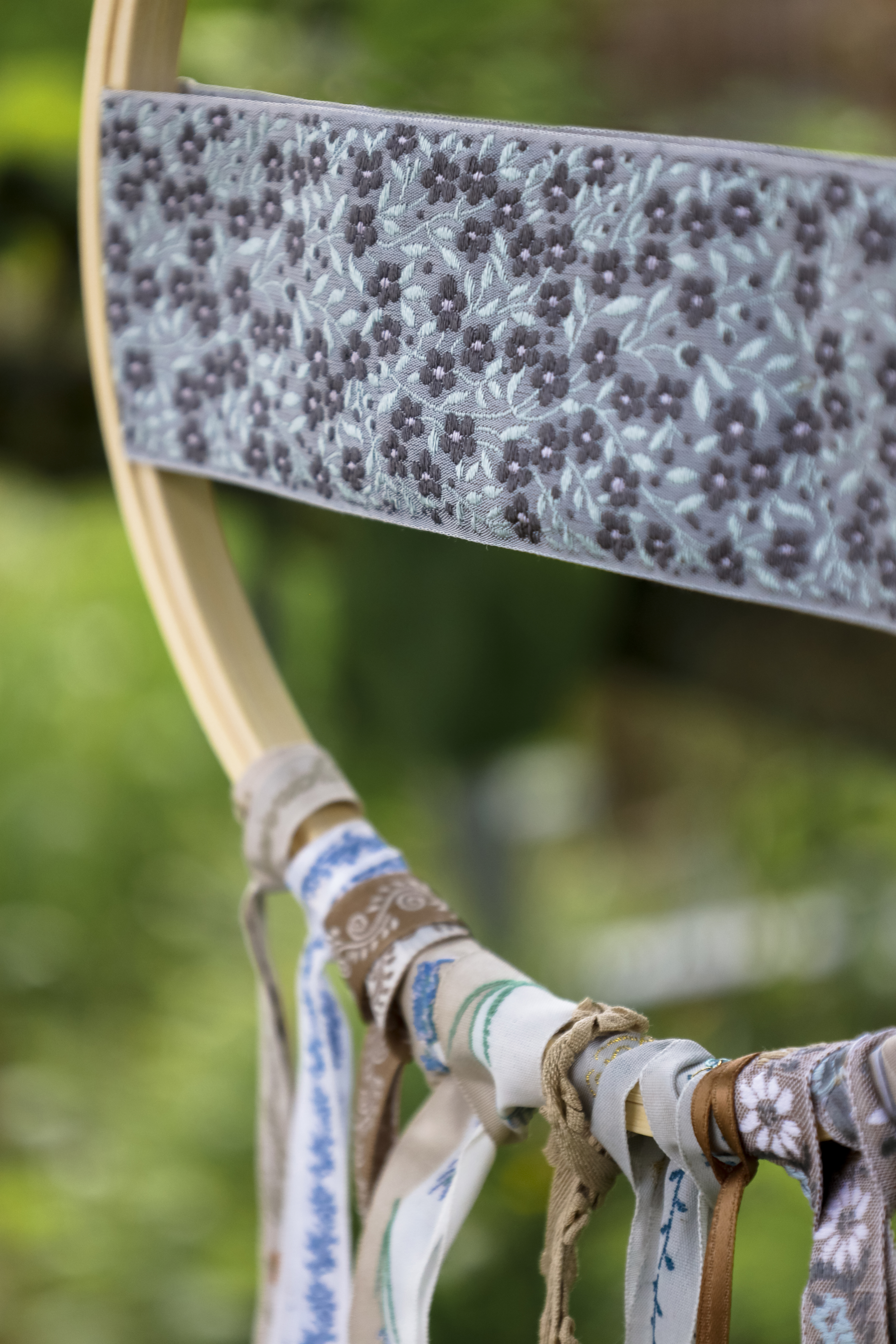 Vergißmeinnicht - Schmuckwebbänder in einem zauberhaften Mix in Beige Blau Grau. Die Bänder stammen aus dem Hause Acufactum und aus der Bänderei Kafka.