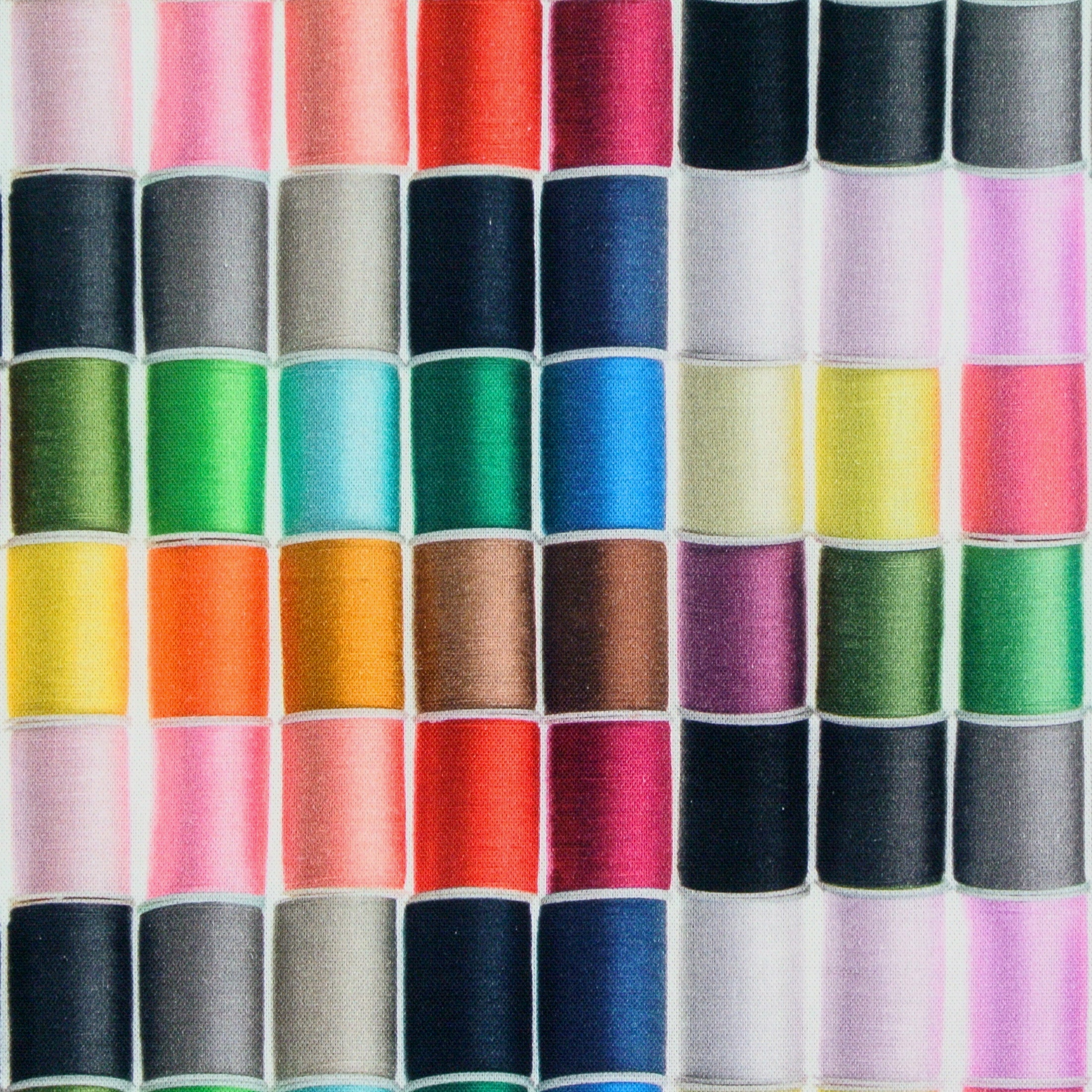 Bis Sonntag 19.10.2025 bis 23:59 Uhr gibt es zu jeder Bestellung ab 40,00 € Warenwert 0,50 x 1,40 m von diesem schönen, etwas festeren Baumwollstoff mit den kunterbunten Garnrollen gratis dazu.
