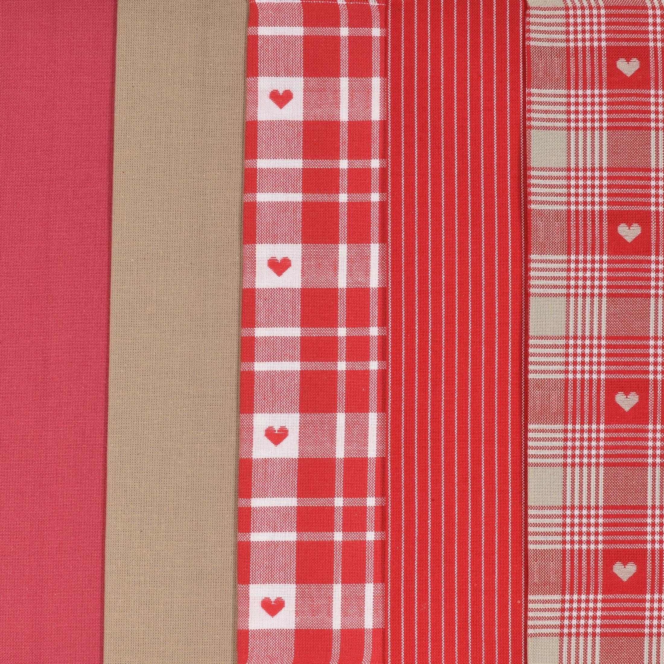 Westfalenstoffe Stoffpaket mit 5 Webstoffen mit Herzen, Streifen und Uni in Rot Beige