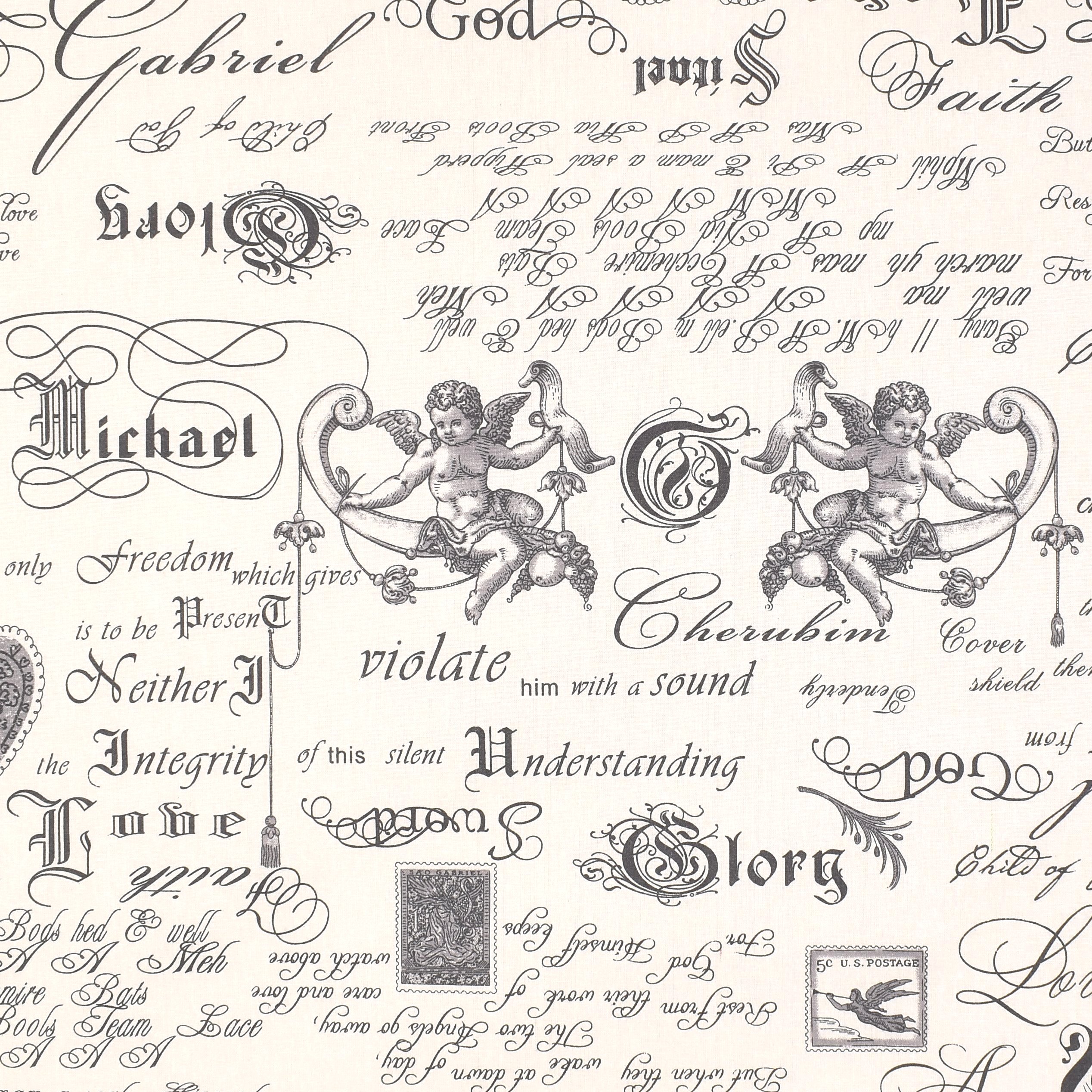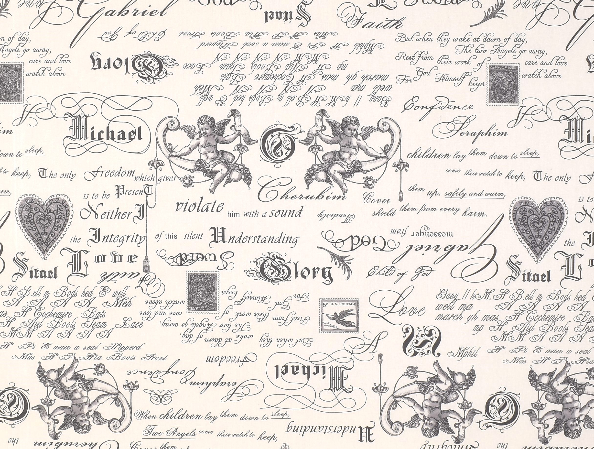 Beschichtete Baumwolle mit romantischen Engeln und Schrift