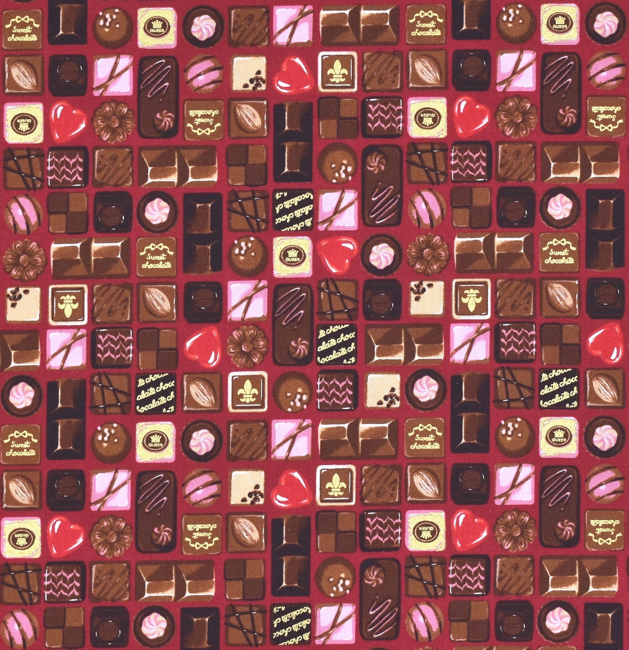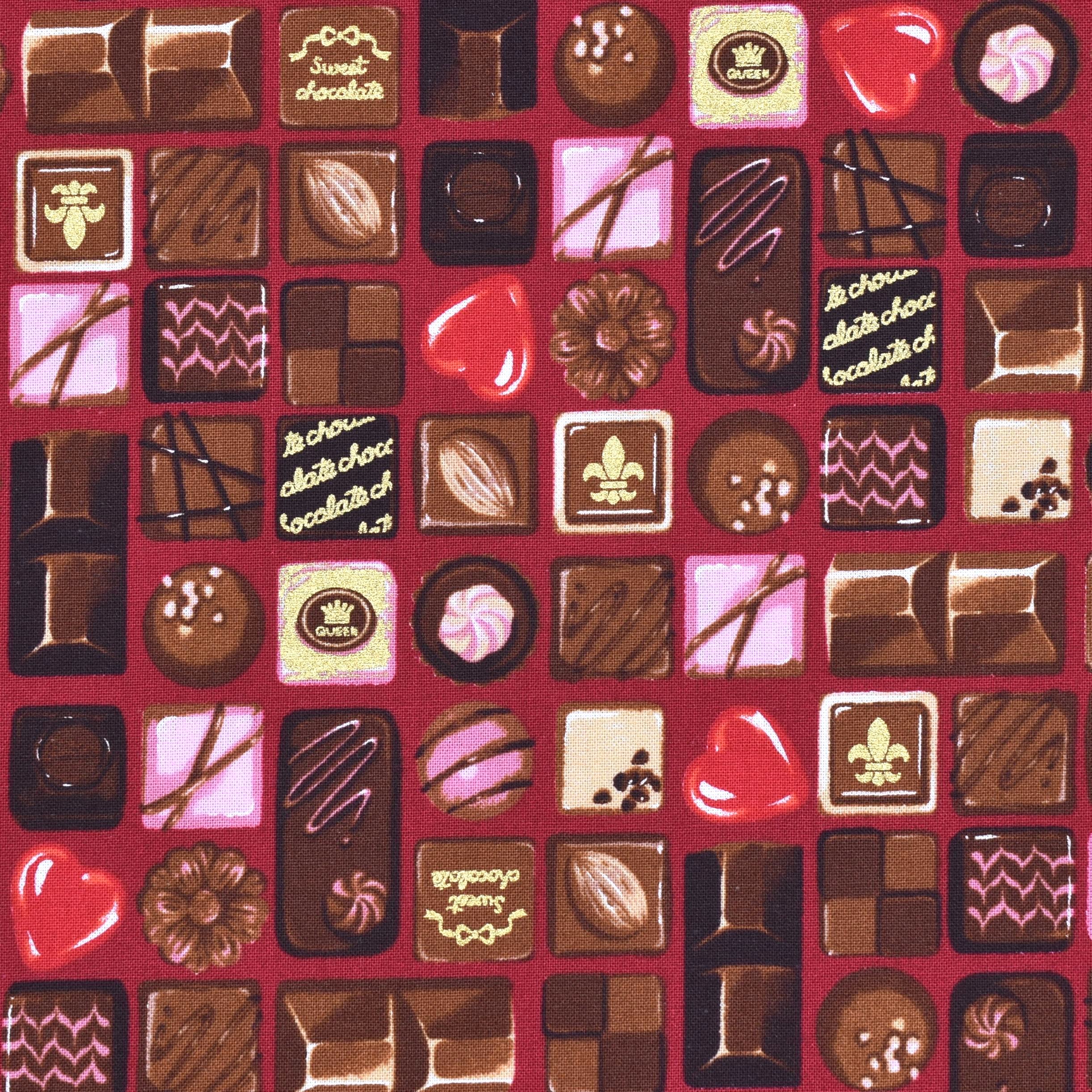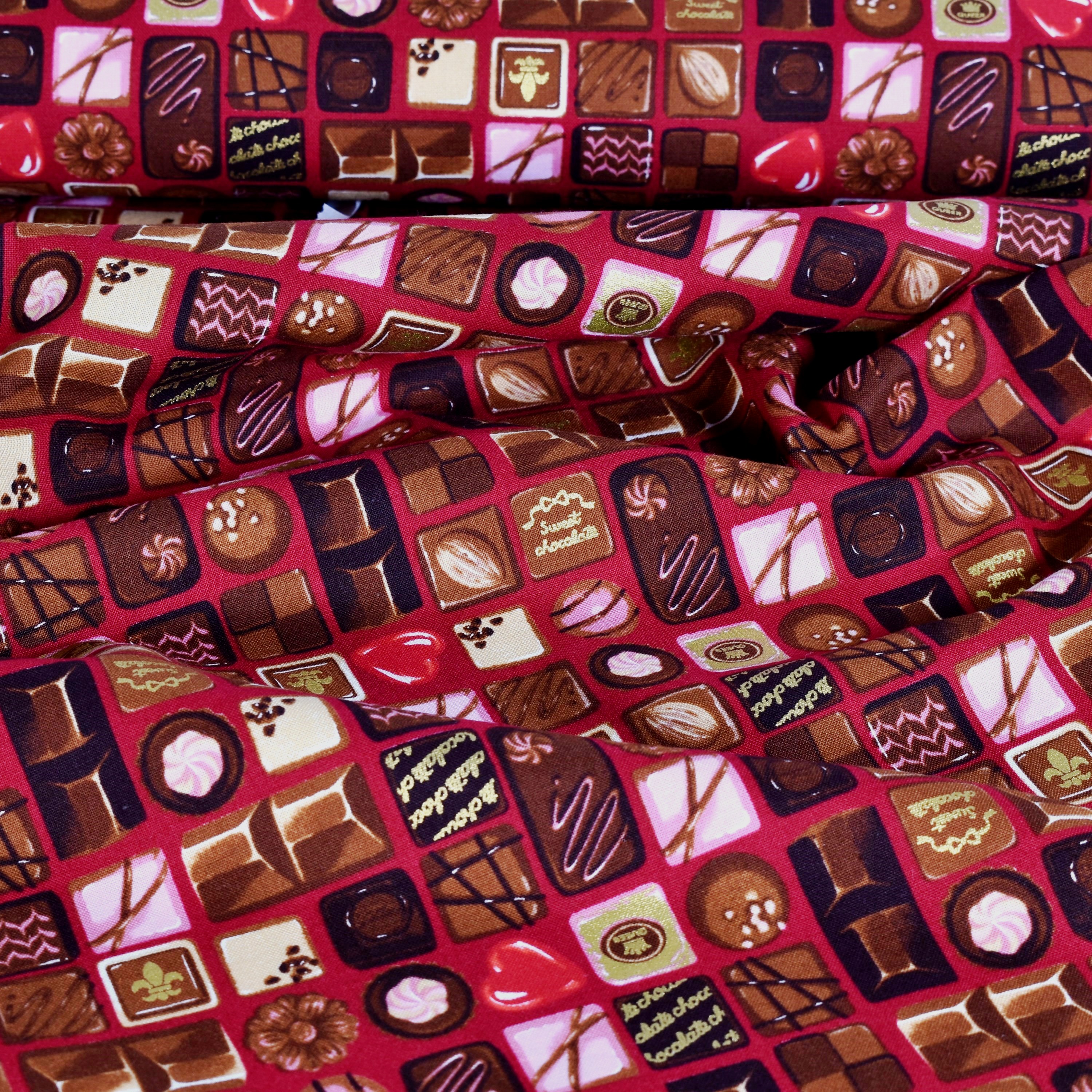 Patchworkstoff Pralinen Süsses Chocolate Box rot