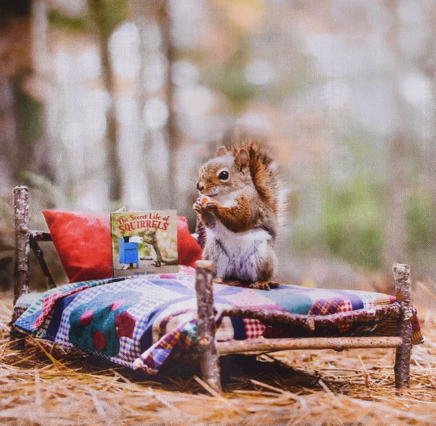 Patchworkstoff Panel mit Eichhörnchen aus der Serie "The Secret Life of Squirrels III"