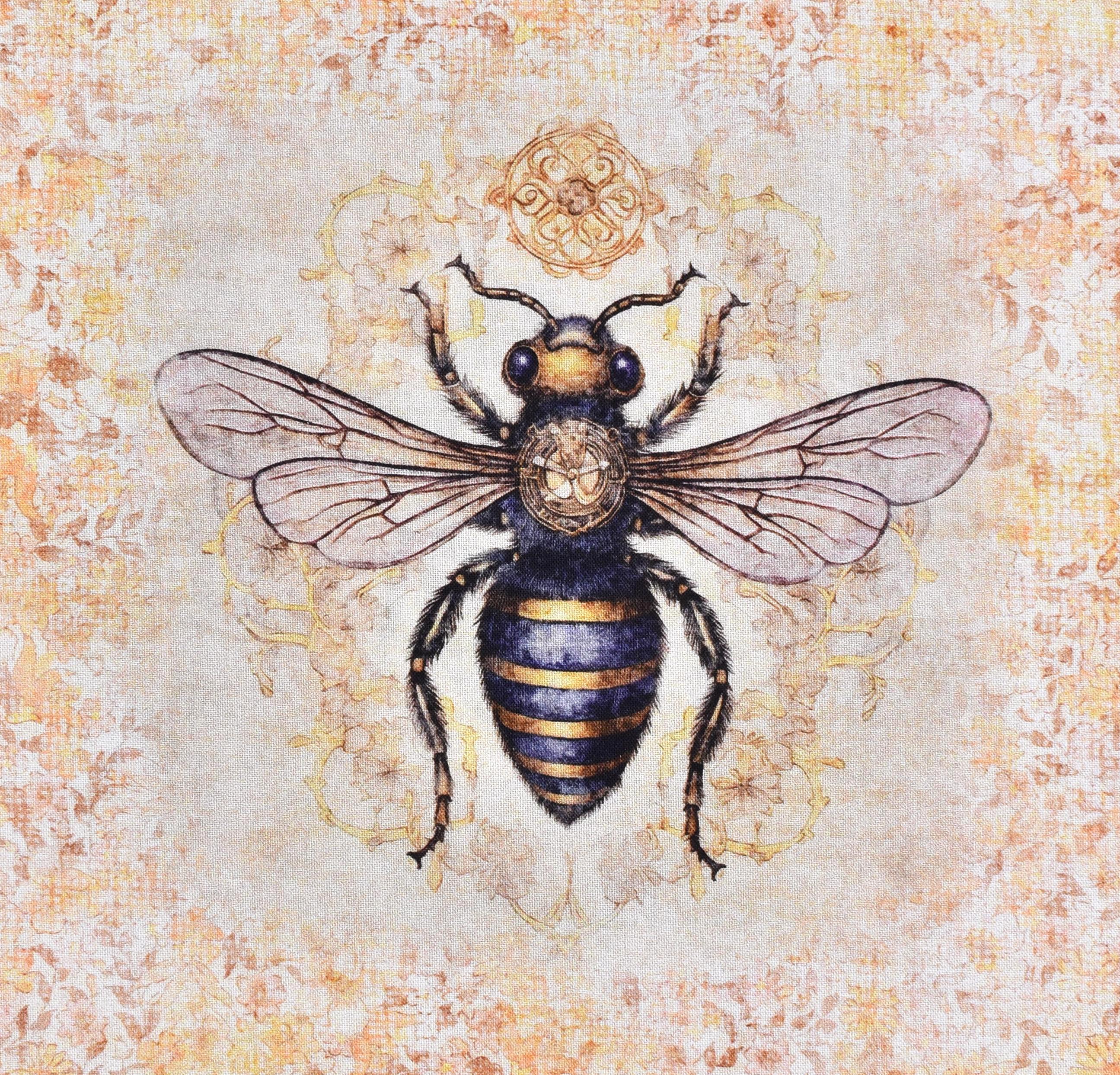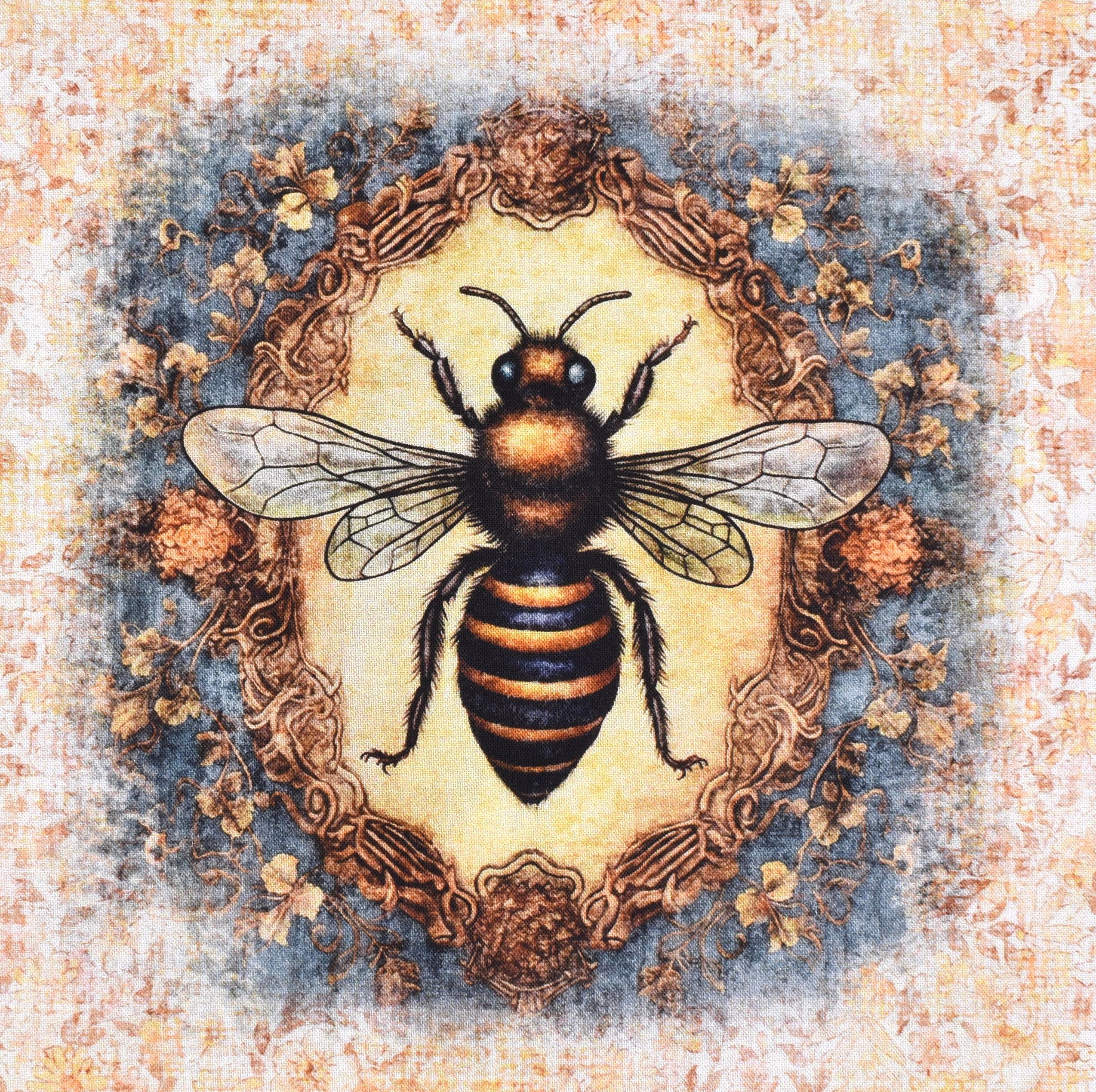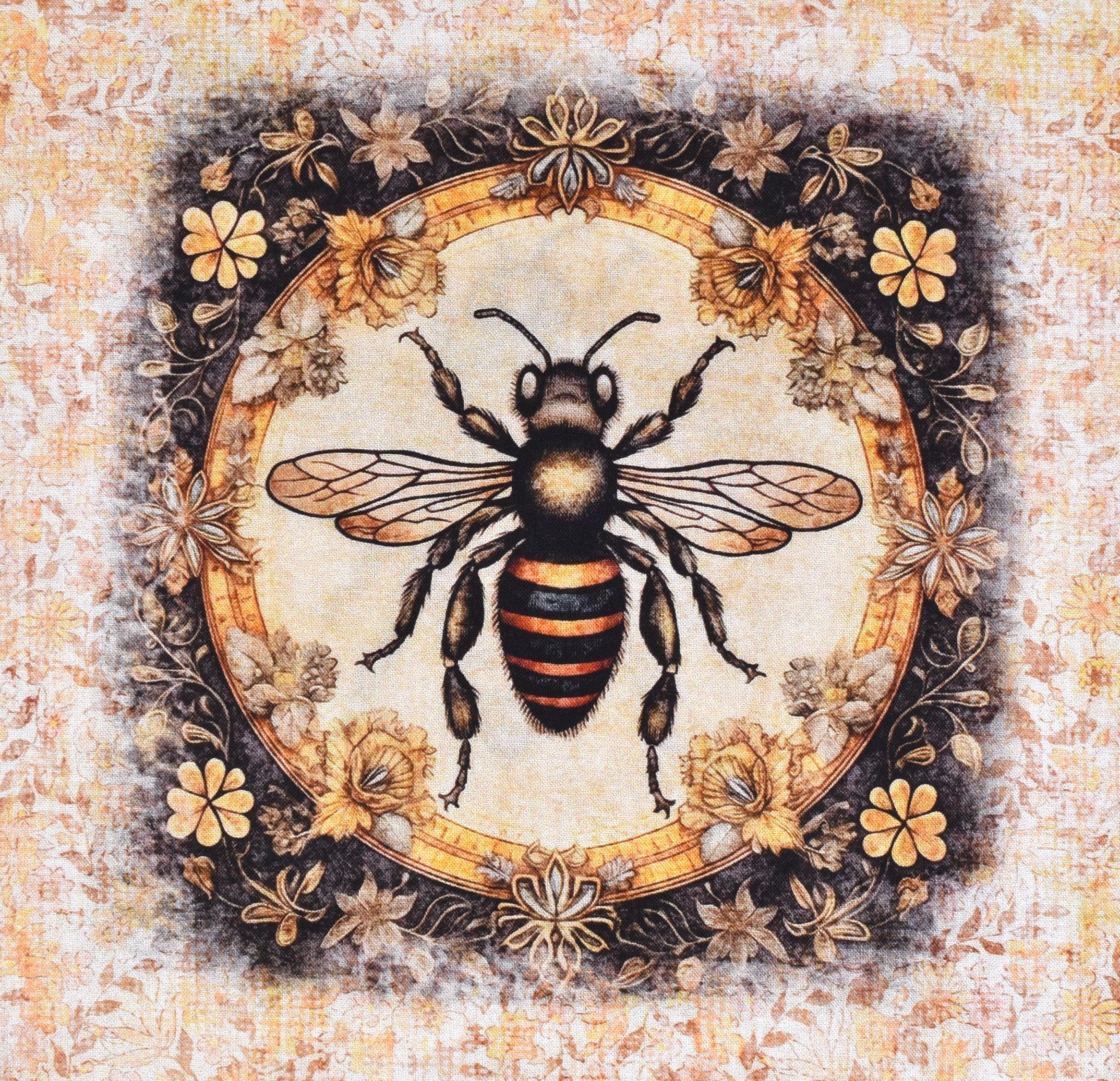 Patchworkstoff Panel mit nostalgischen Bienenmotiven aus der Serie "Queen Bee"