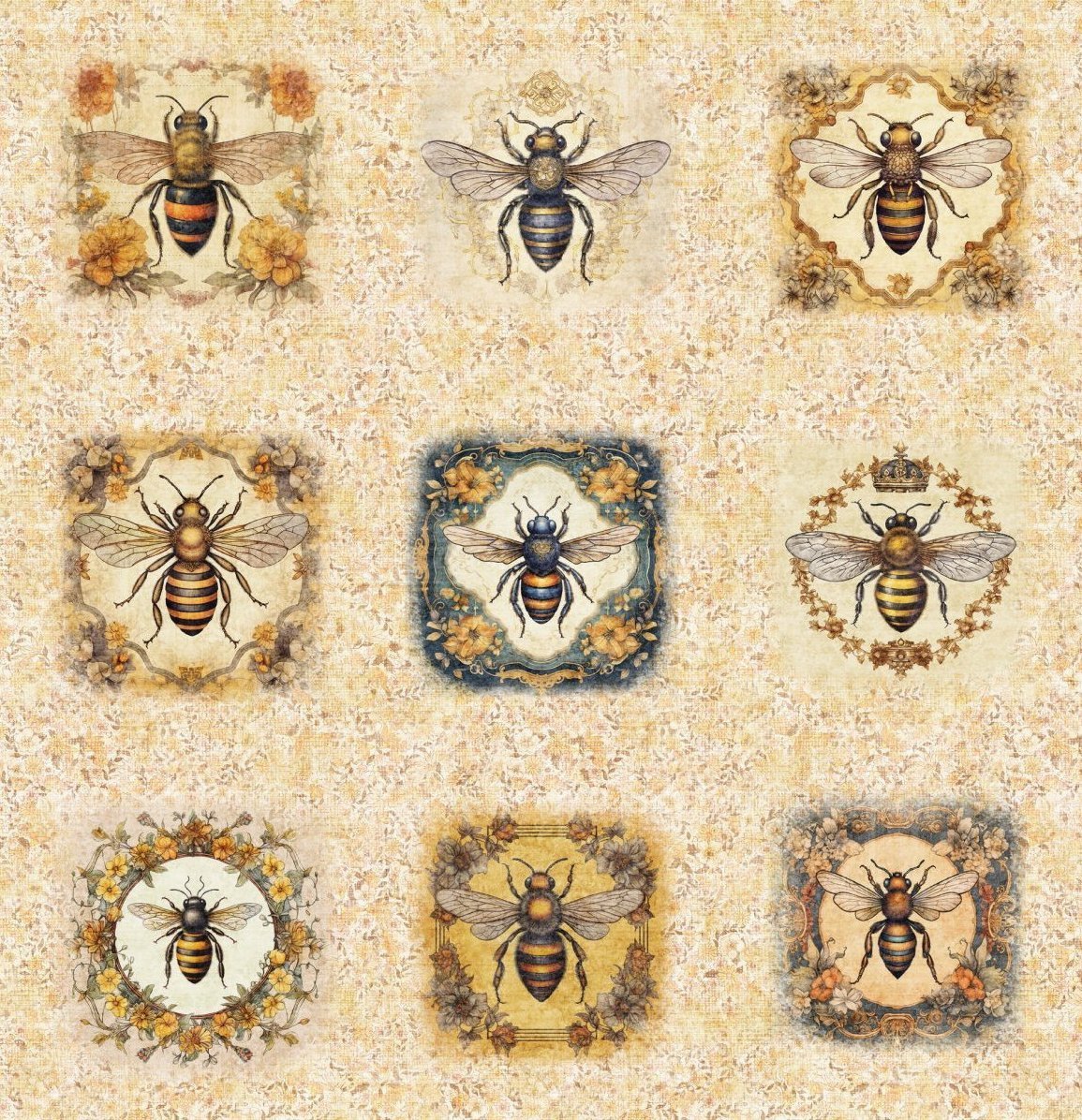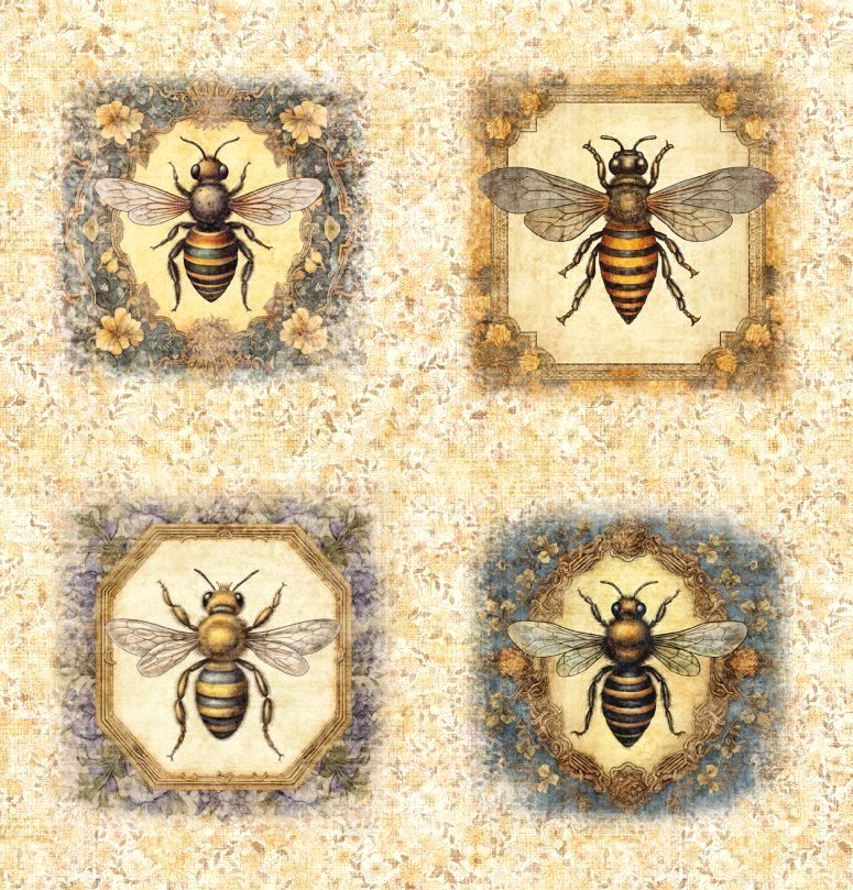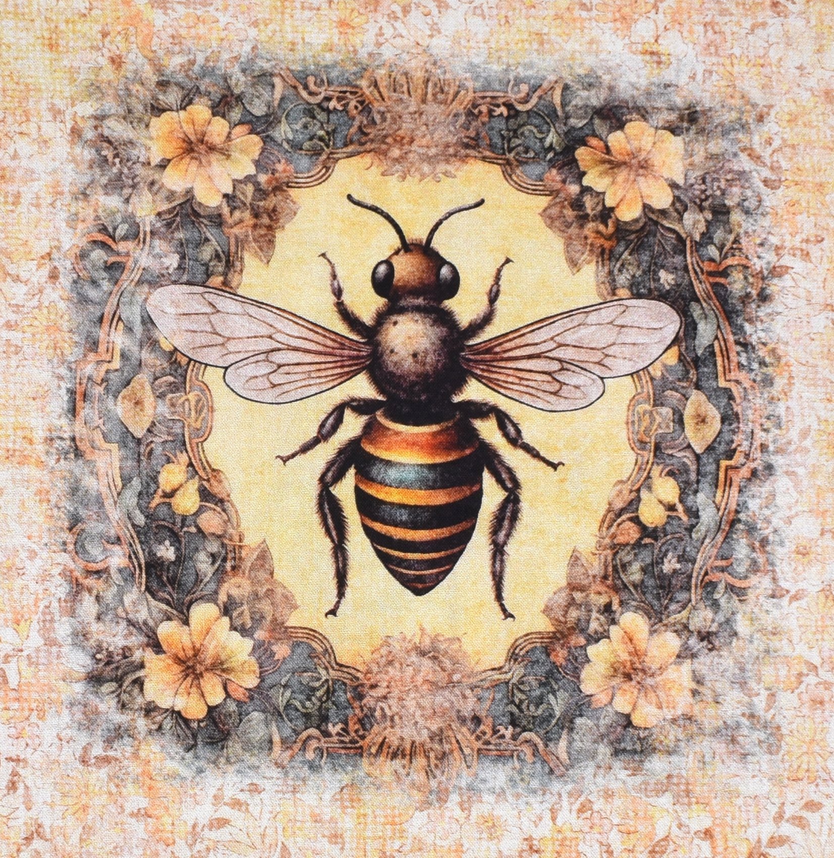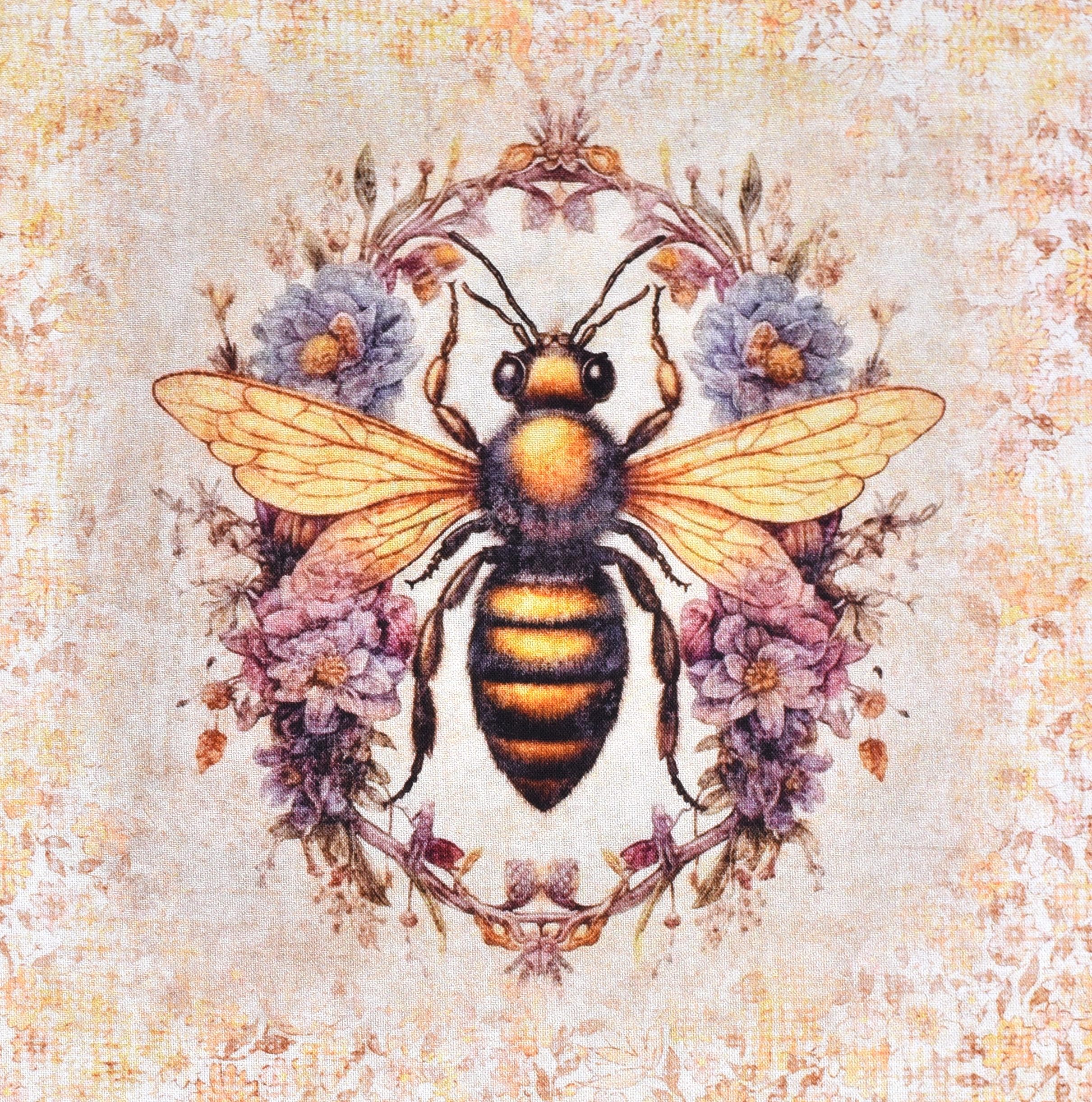 Patchworkstoff Panel mit nostalgischen Bienenmotiven aus der Serie "Queen Bee"