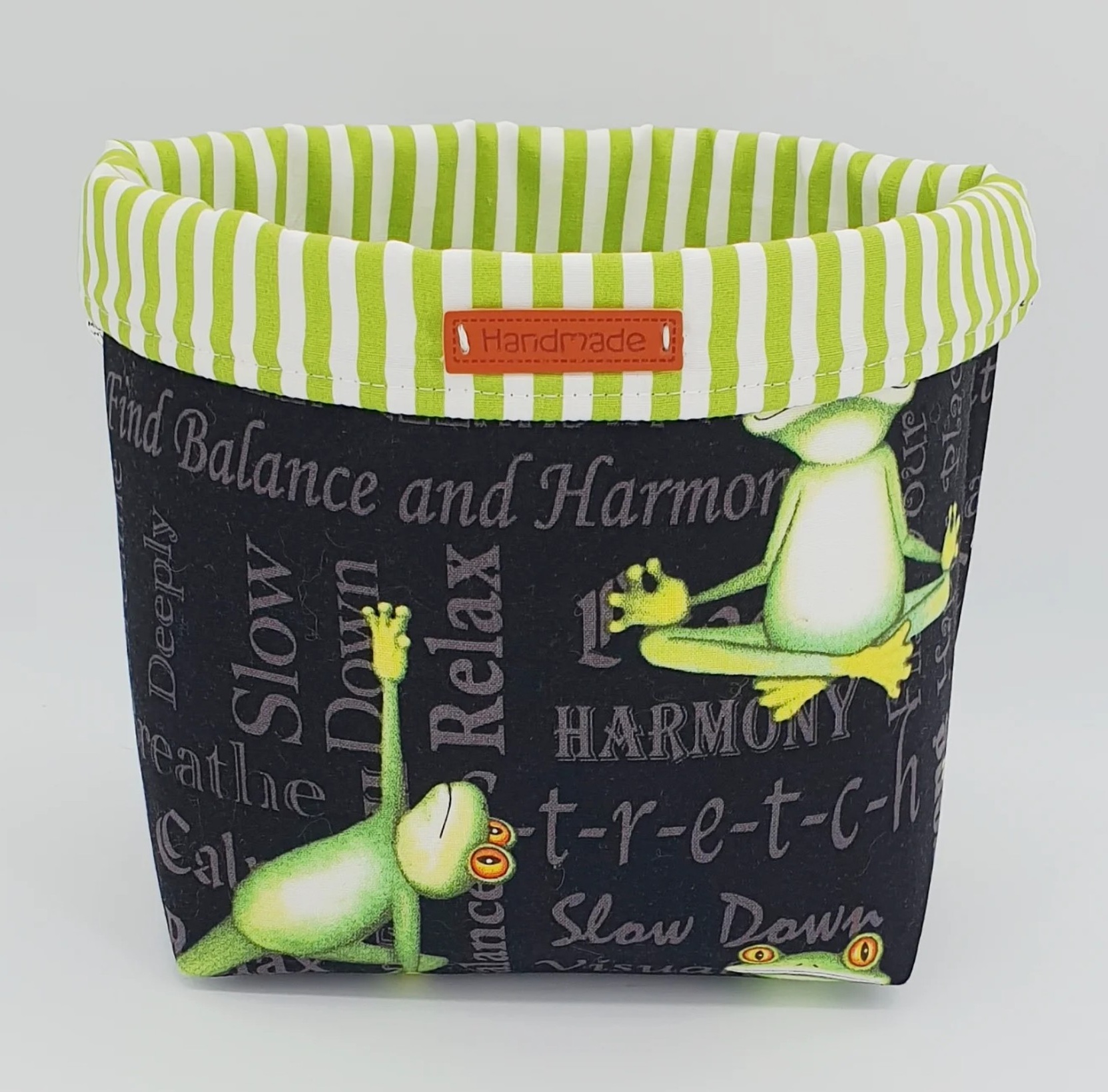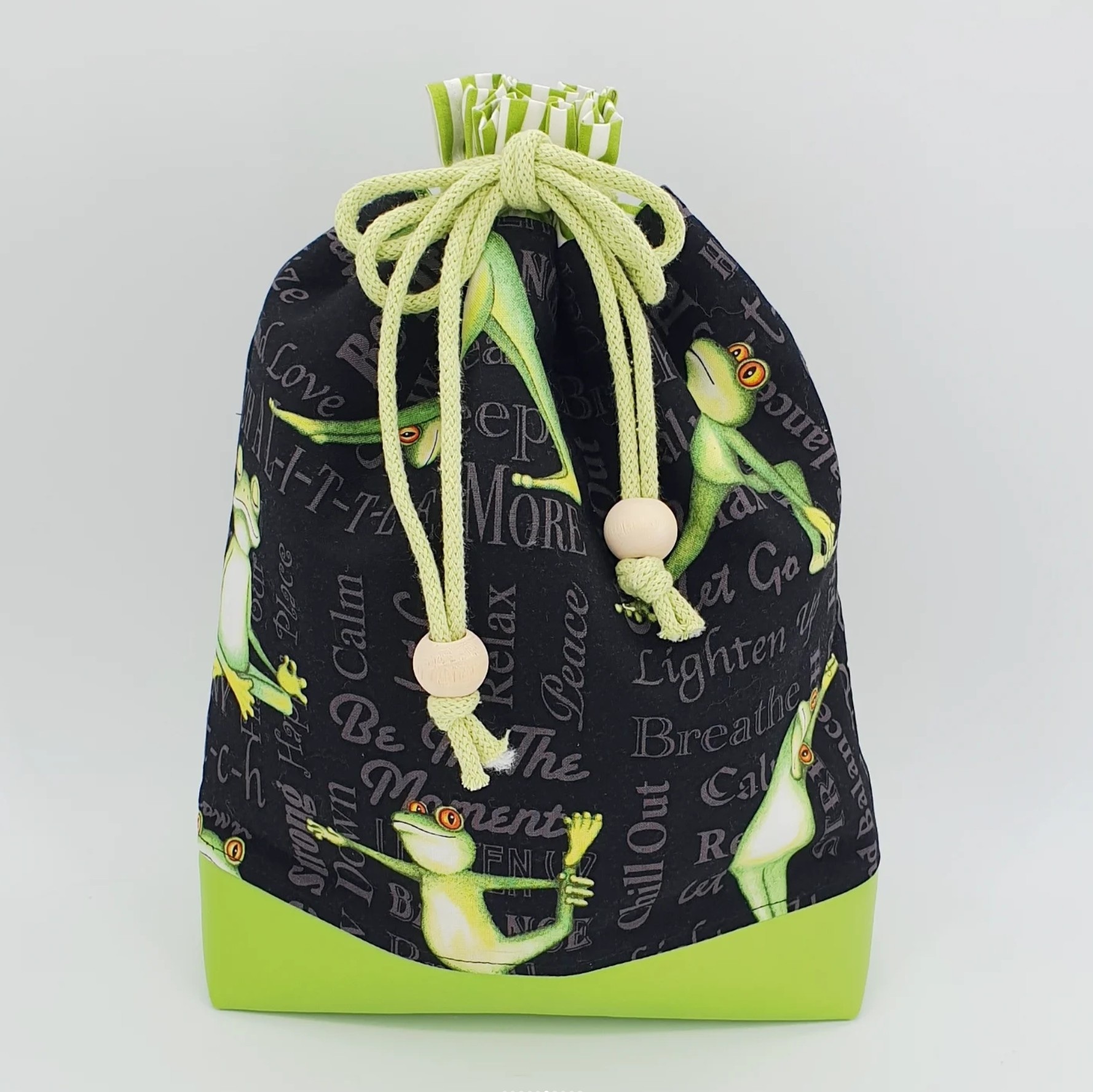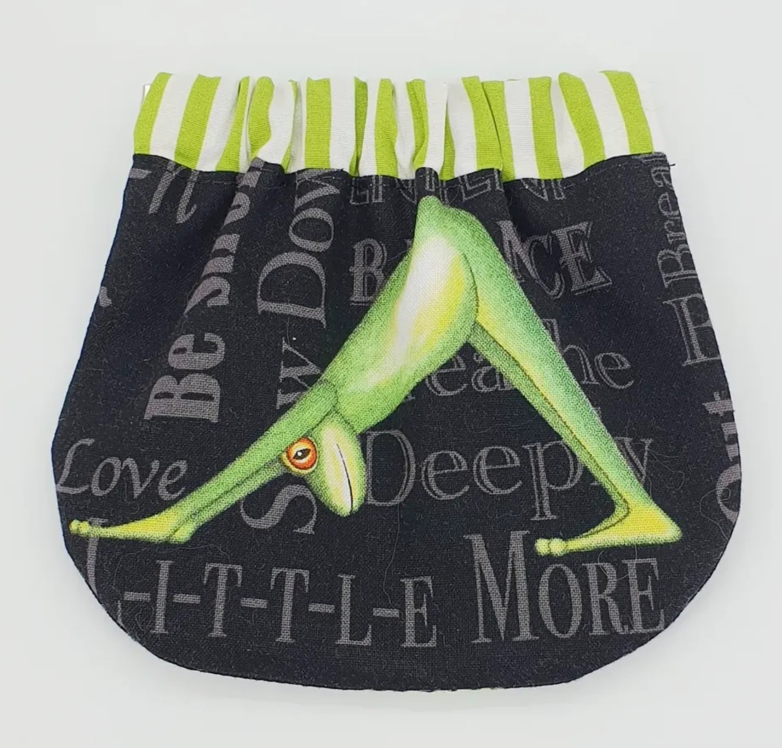 Patchworkstoff mit Fröschen beim Yoga "Back in 5 Minutes"