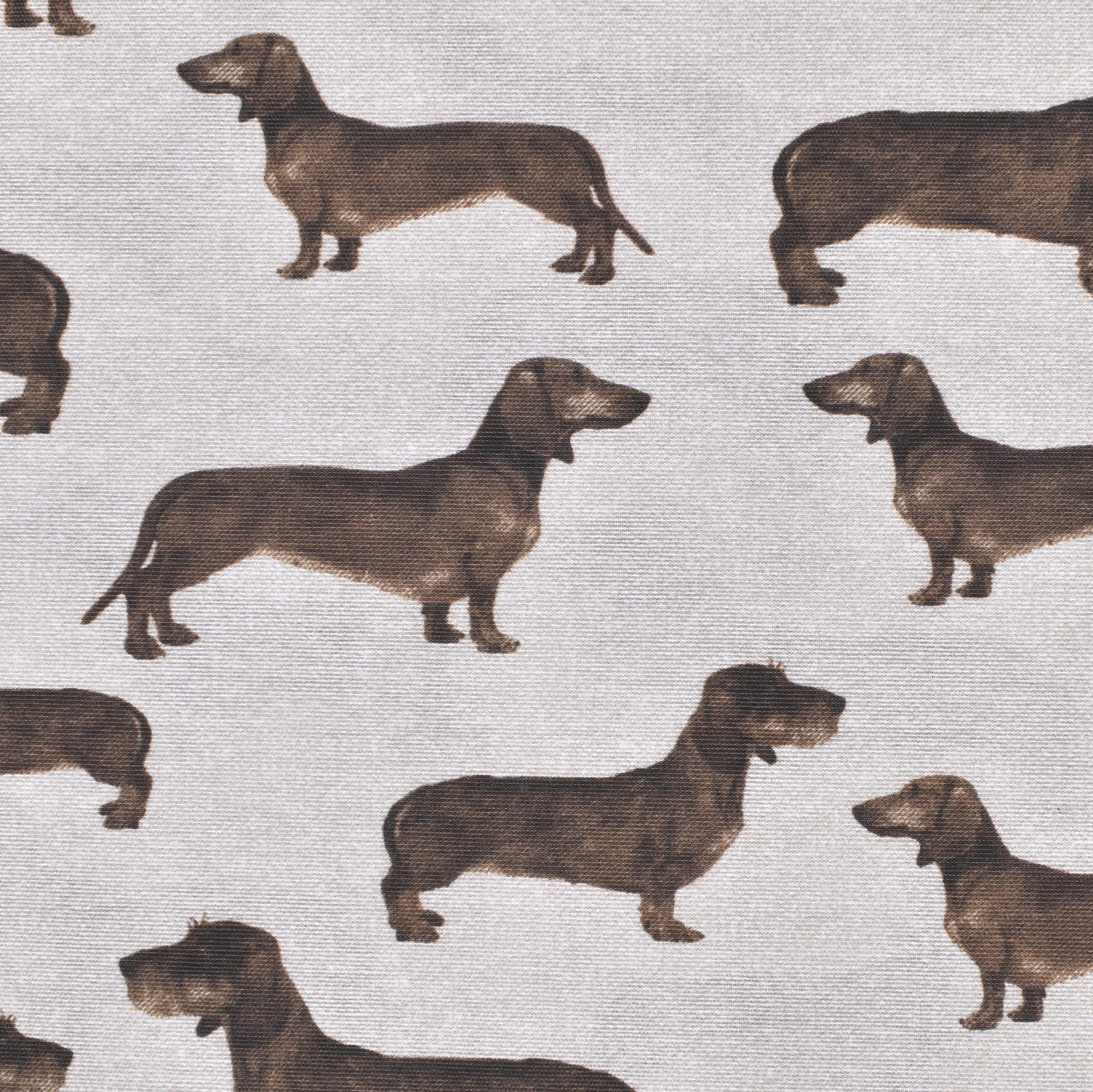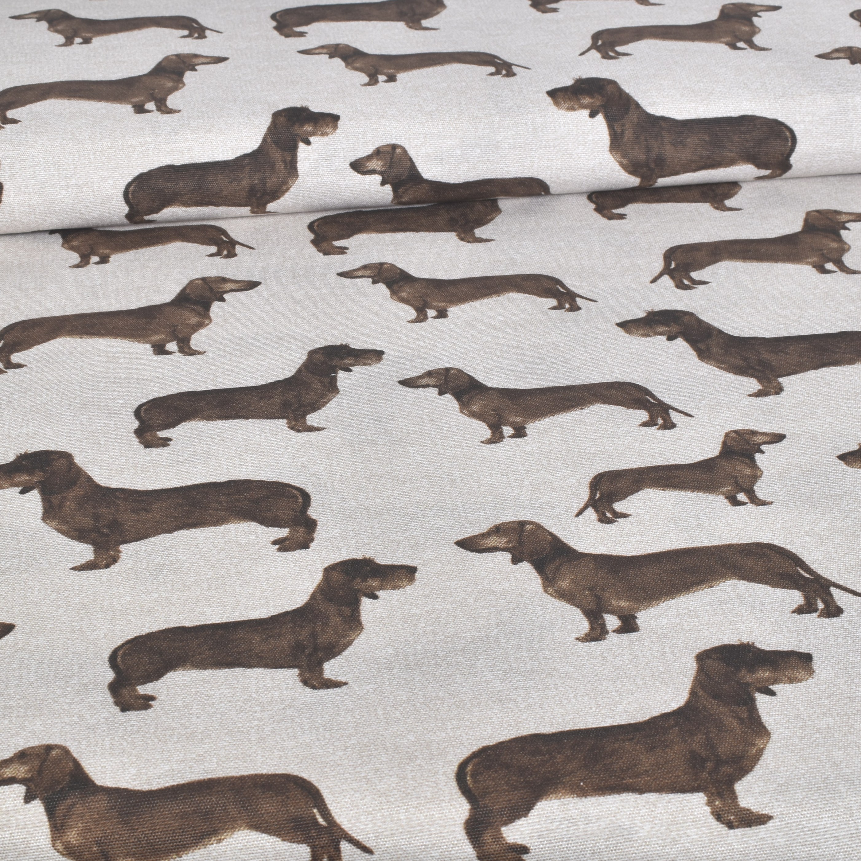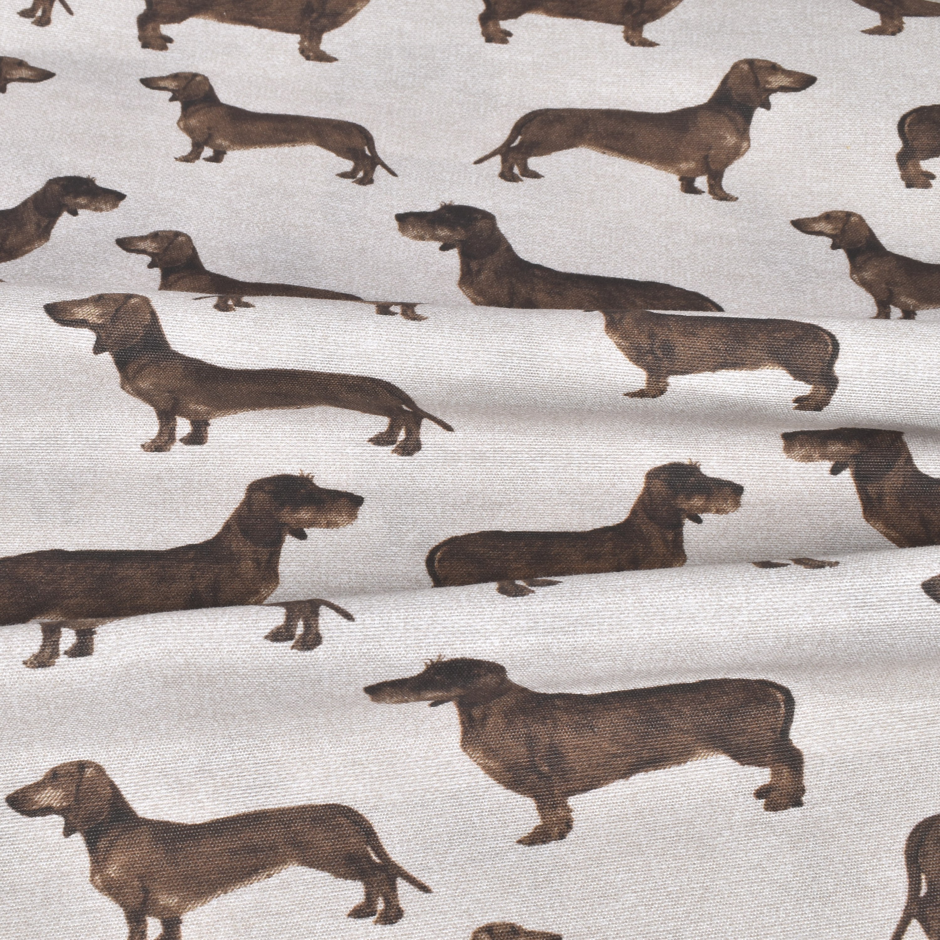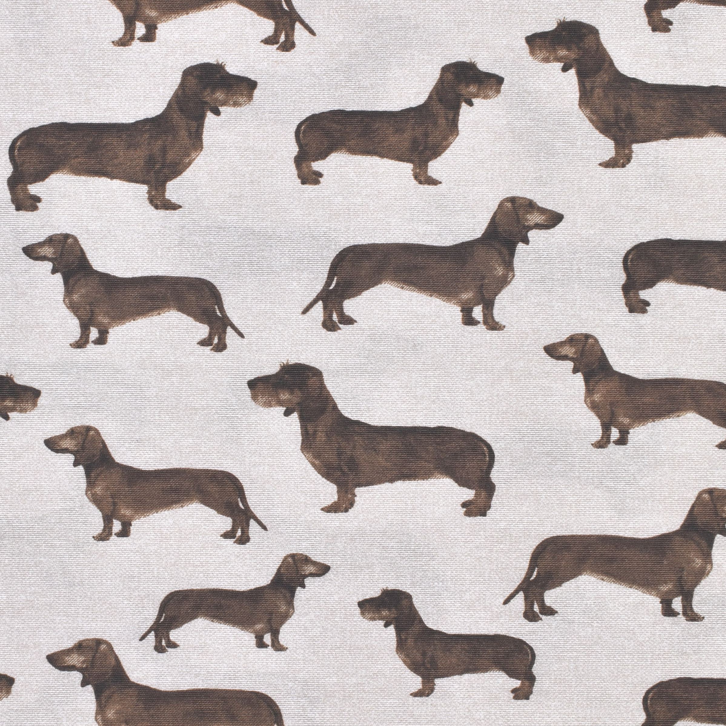 Dekostoff mit vielen kleinen Dackeln auf Hellbeige von Glünz.