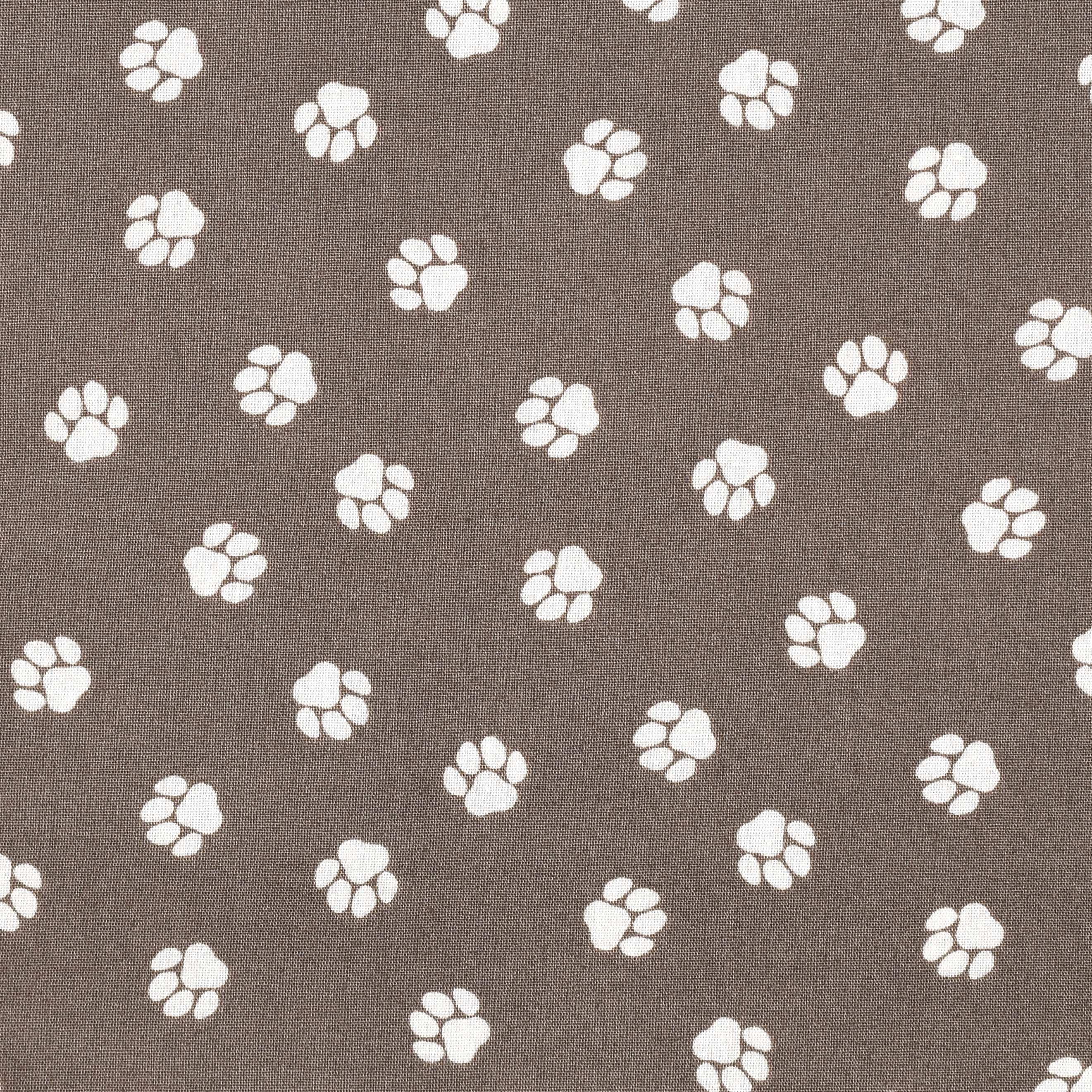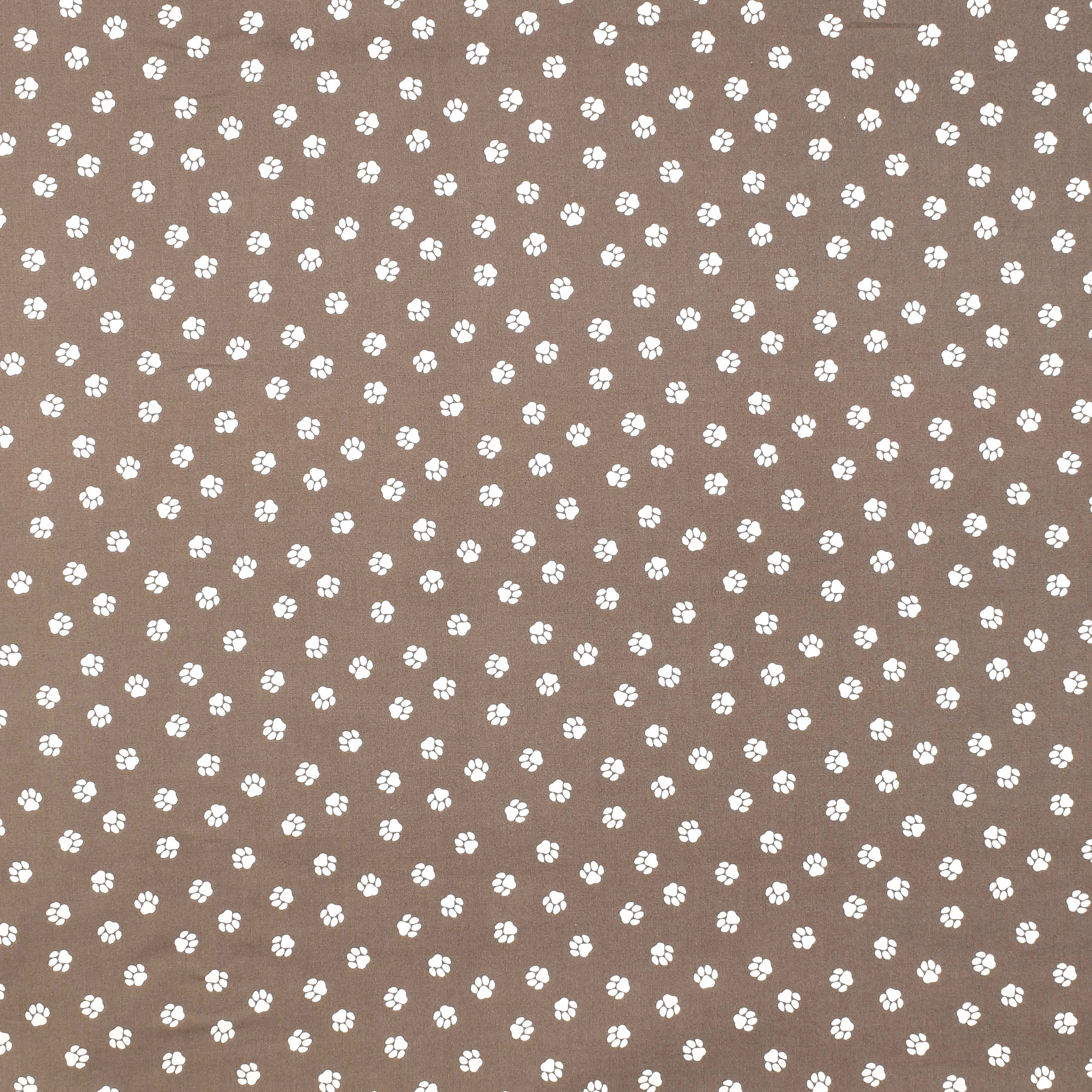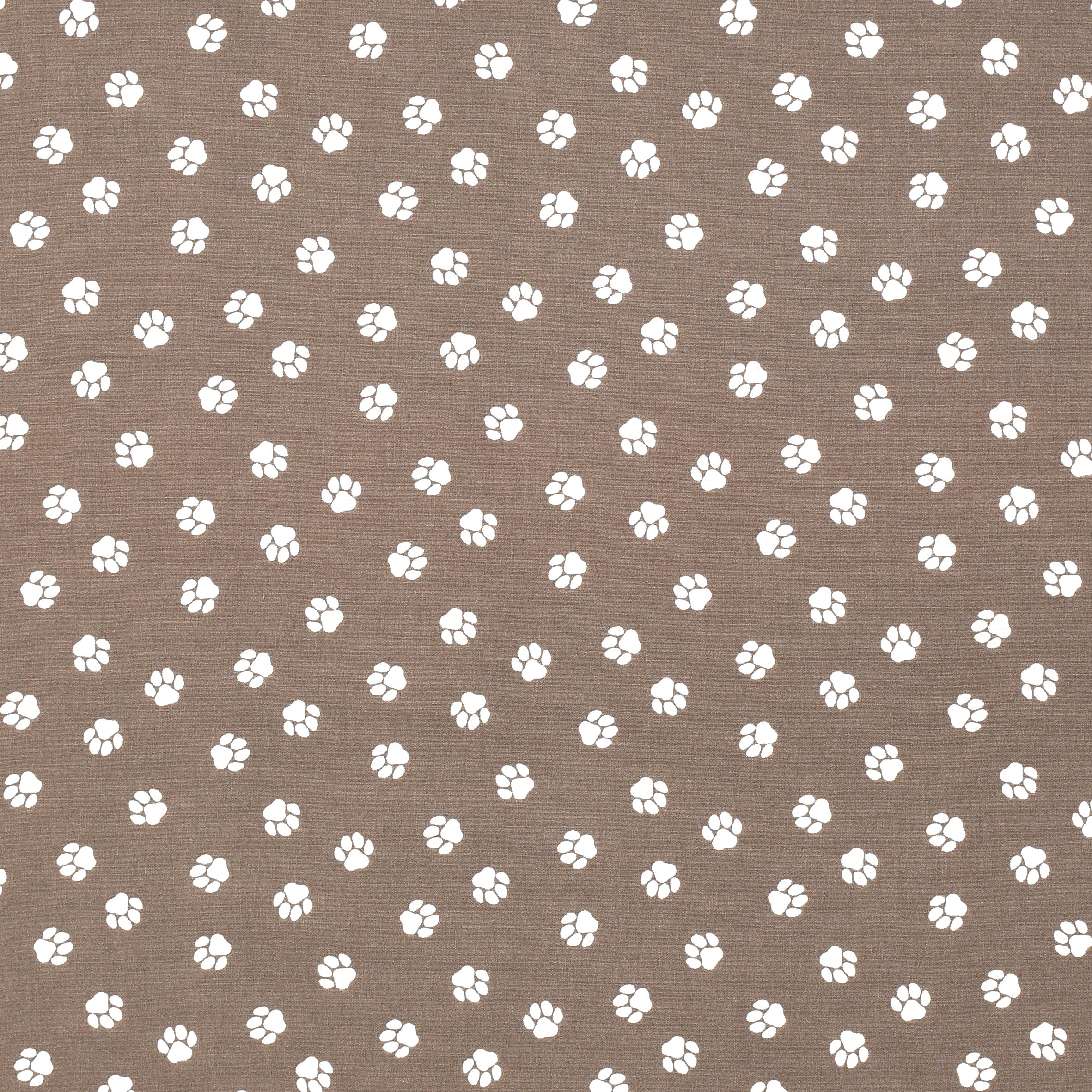 Baumwollstoff mit vielen kleinen Pfoten auf Braun