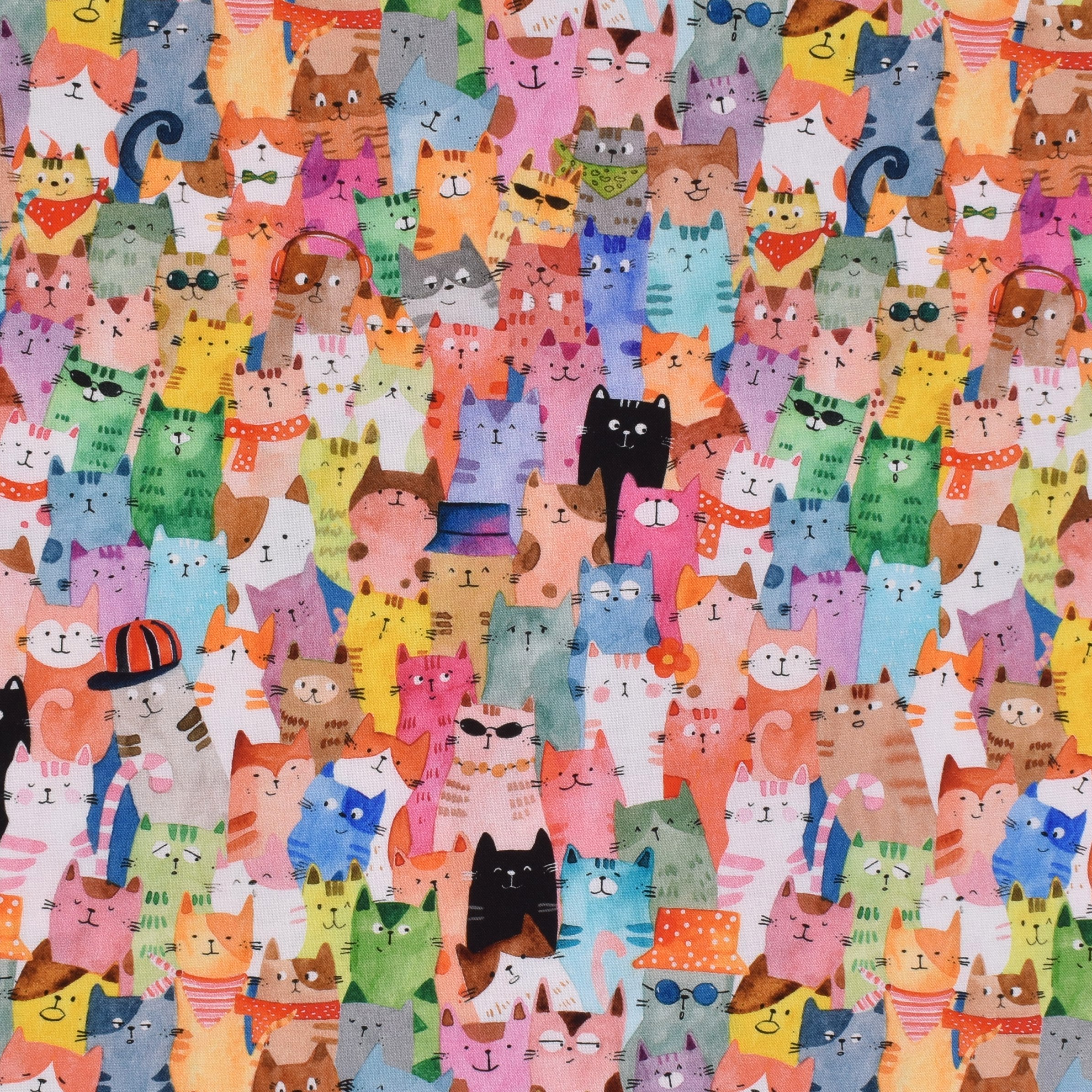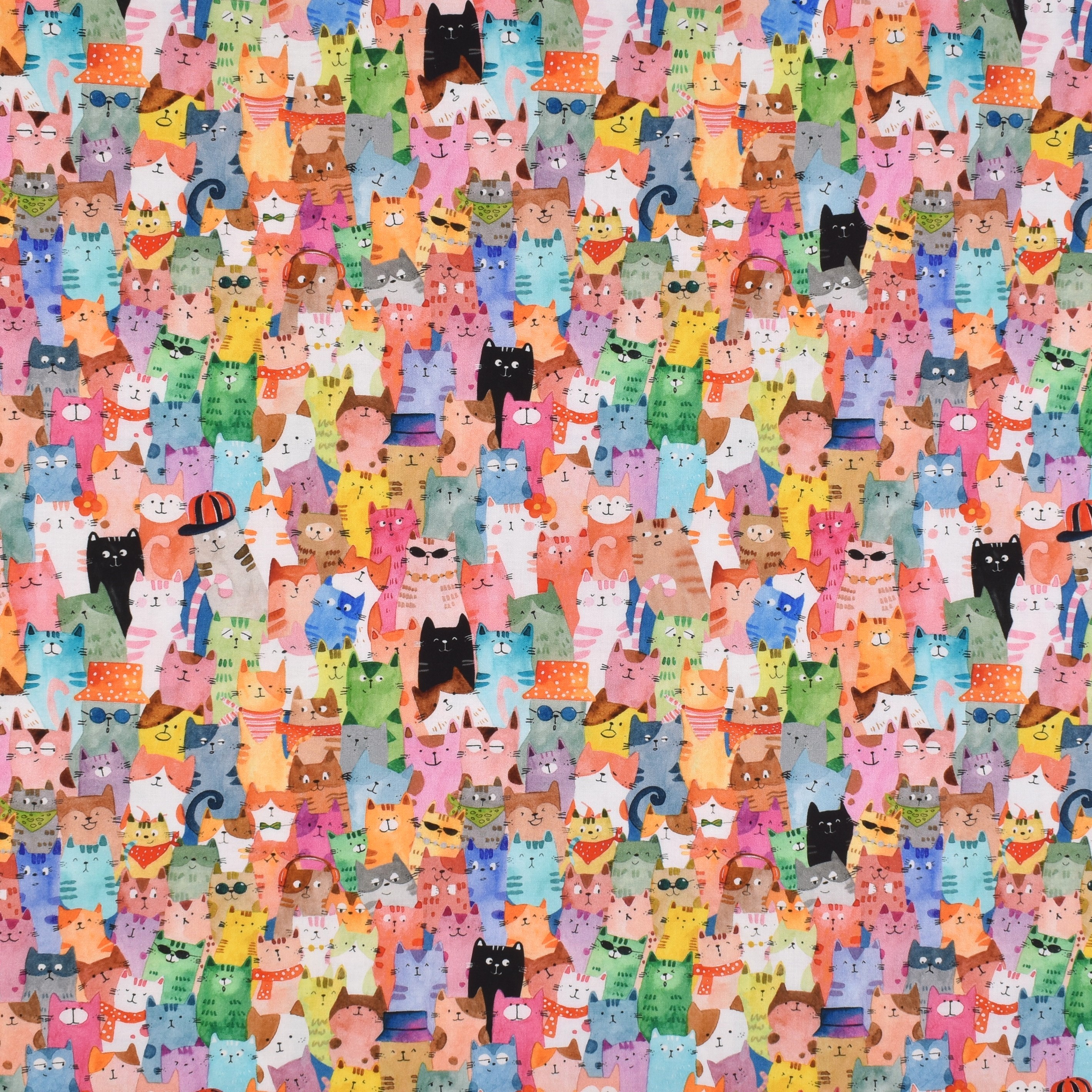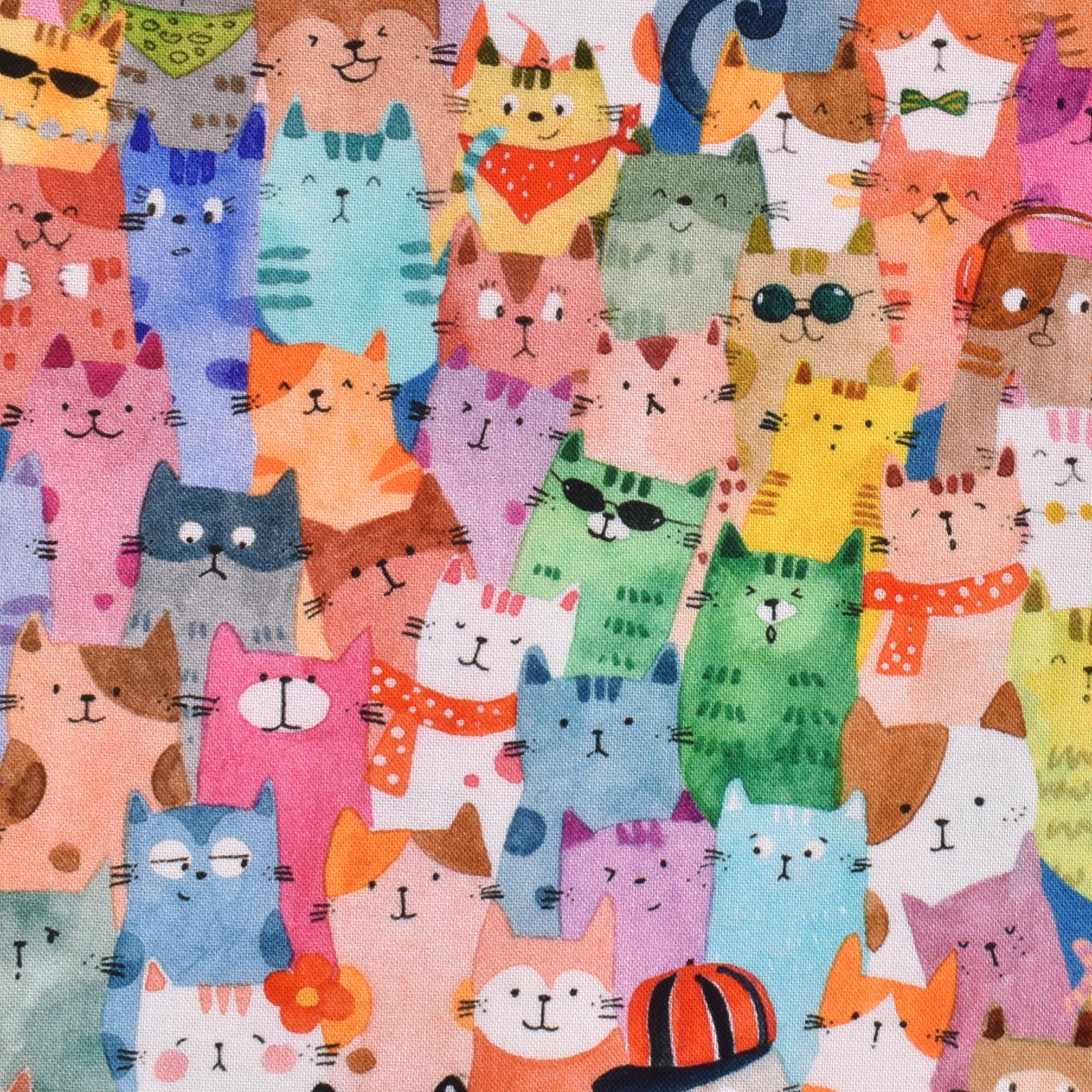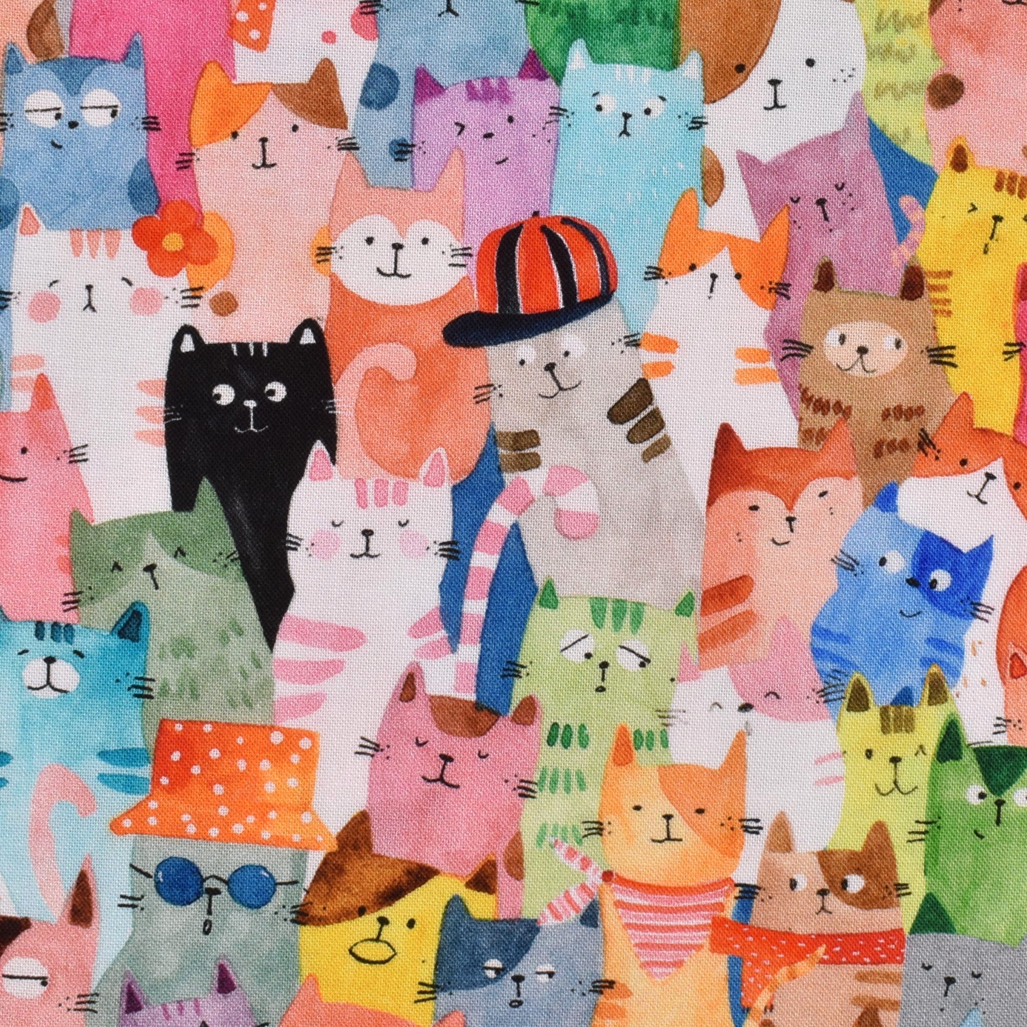 Dieser liebevoll designte Katzenstoff begeistert nicht nur Katzenliebhaberinnen. Perfekt für kreative DIY Projekte wie Kissen, Taschen, Decken Katzenaccessoires und Dekorationen.