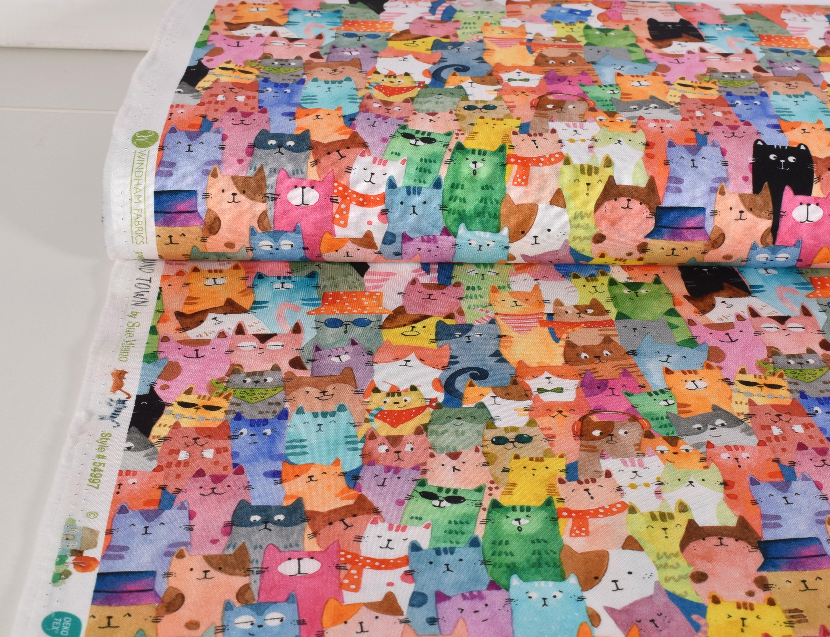 Ein ganz besonderer Patchworkstoff mit vielen coolen und verspielten Katzen aus der Serie "Cats Around Town".