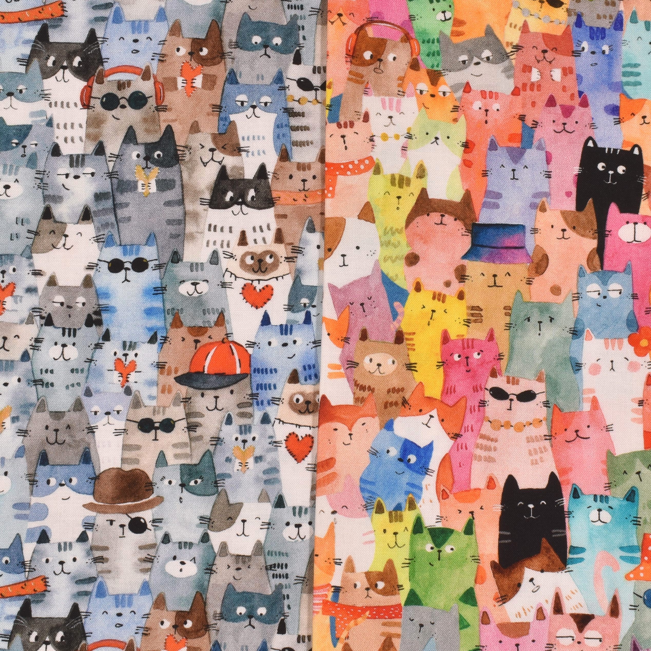 Patchworkstoff mit ausgefallenen Katzen aus der Serie "Cats Around Town"